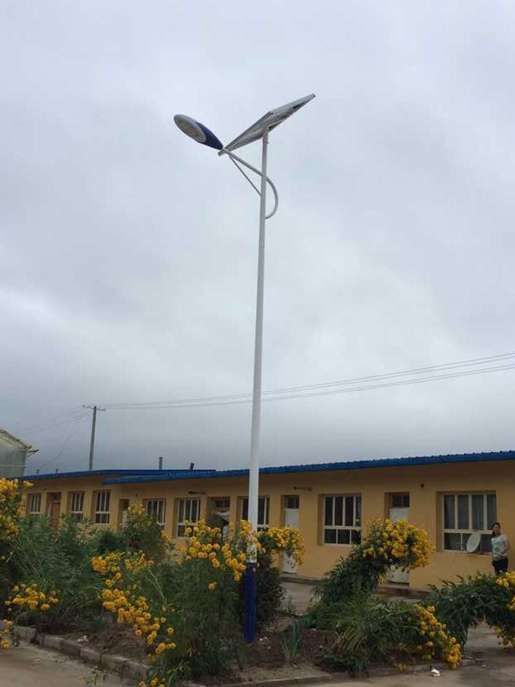 安裝的是農(nóng)村常用規(guī)格的太陽能路燈,高度6米,光源30W,晚上照明6小時(因為是在農(nóng)村地區(qū),所以6小時