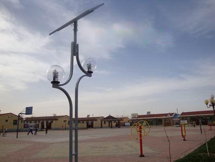 寧夏中衛市路燈照明工程,采用我蘭光照明自主設計生產的造型太陽能庭院燈,廠技術部采用單板多晶太陽能板,配合倆個造型球泡節能燈,太陽能庭院燈主桿采用規則的變徑方桿組成。造型整體猶如一個“火”字,直觀的給人一種熱情和活力,更具寧夏地域特色.