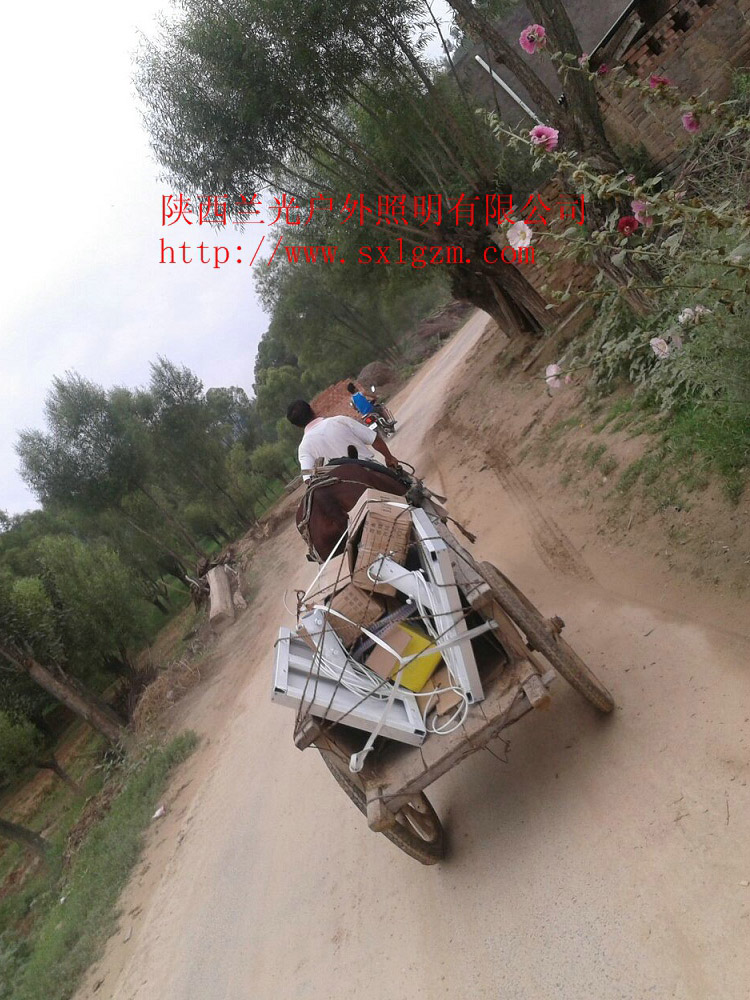 陜西榆林是佳縣太陽能路燈照明項目,佳縣在榆林地區相對其他縣區比較落后,在廣大的農村地區根是,基本的村莊道路設施都沒有完善,國家近年來的對廣大農村扶貧支持力度加大,為農村地區修筑水泥硬化道路,安裝太陽能路燈,我們蘭光照明在佳縣村長上安裝,首次用牛車來拉燈桿,安裝條件比價艱苦,但是我們的指導安裝人員還是克服了種種困難,使得真個村莊的燈亮了起來,改變了夜間走夜路的歷史。