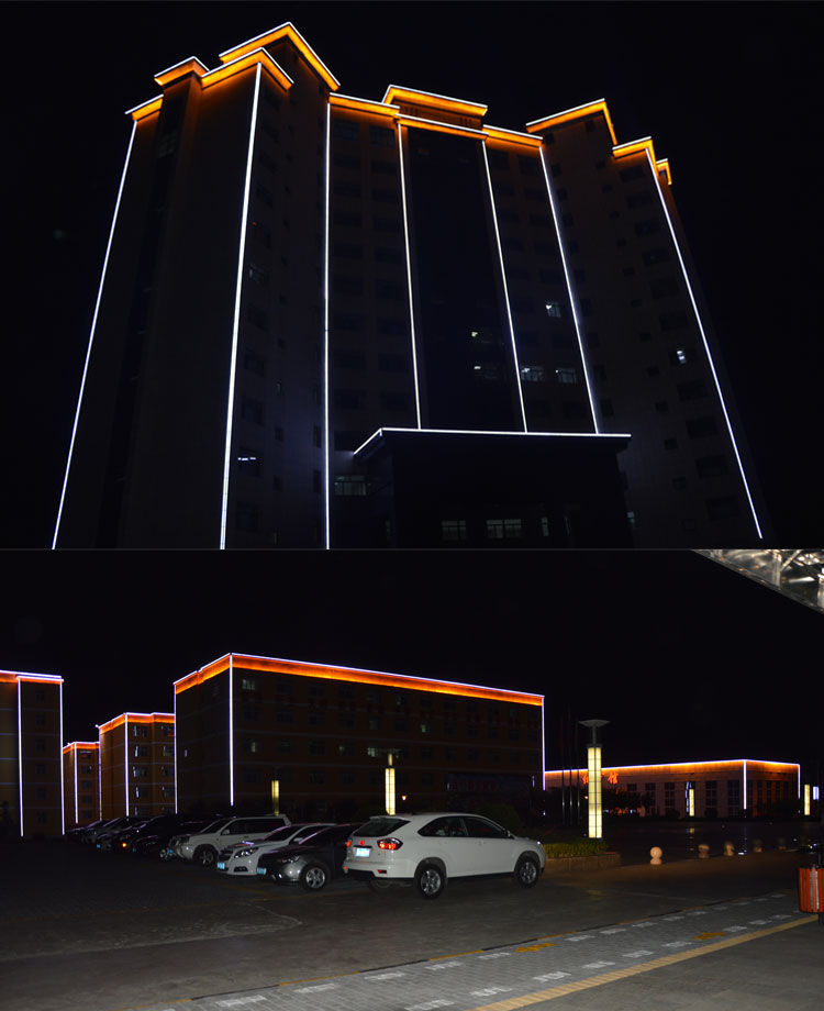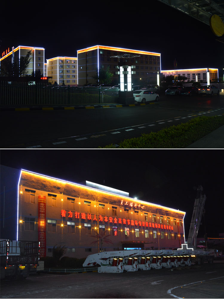 銅川建新煤化是我公司承接的廠區(qū)亮化工程之一,該項目整體從設計到施工,全程有我公司承擔負責,設計根據甲方的要求,采用簡潔明了的線條勾勒輪廓和打亮為主。在廠區(qū)主要的辦公樓、餐廳、員工活動中心、員工福利中心、員工宿舍樓等員工主要活動的場所樓進行重點亮化。